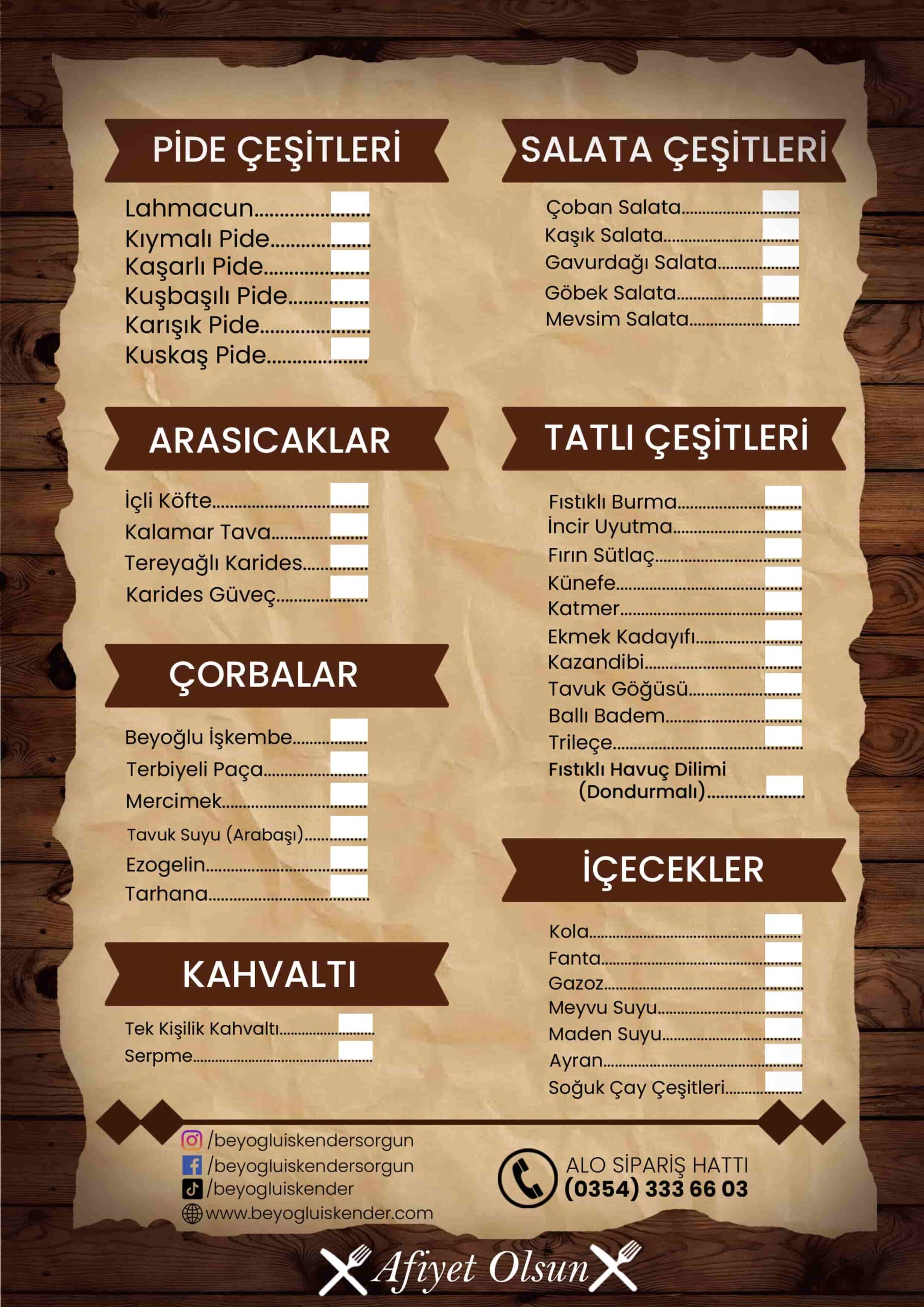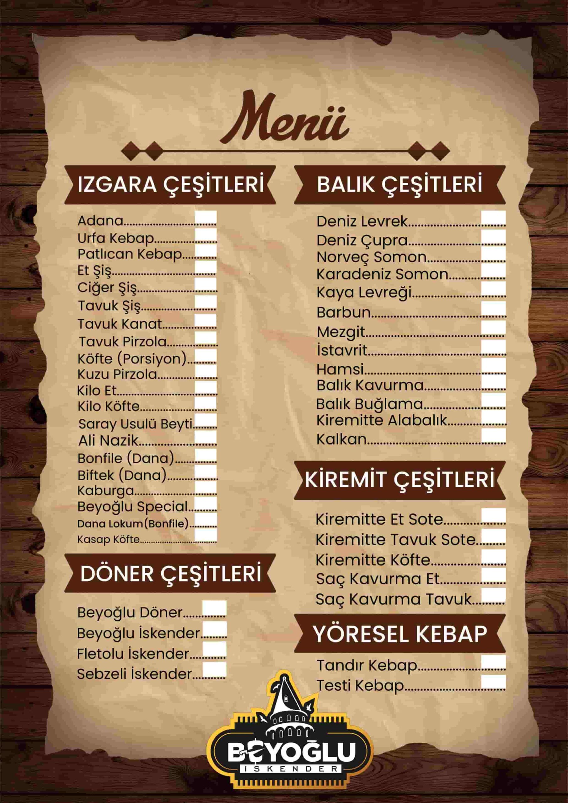 Size Özel Menümüz